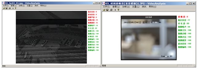 诊断故障类型多:可识别图像模糊、亮度异常、信号缺失、图像噪声、图像偏色、条纹干扰、镜头平移、镜头抖动、图像冻结、图像剧变等十多种视频质量问题;