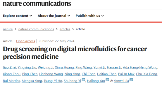 先进计算与集成电路设计实验室姚海龙教授、冀伟清副教授团队与澳门大学、中山大学合作者在《Nature Communications》上发表了题为“Drug screening on digital microfluidics for cancer precision medicine”的研究文章。