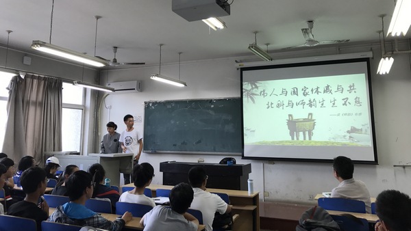 9月21-28日,2017级本科生以班级为单位,先后举办《师韵》读书会。同学们组成读书小组,共读《师韵》,挖掘书本内涵,传承北科精神。读书会上,同学们各展才华,通过朗诵、视频、演讲等形式,充分展示了小组成员对《师韵》精神的深刻理解。