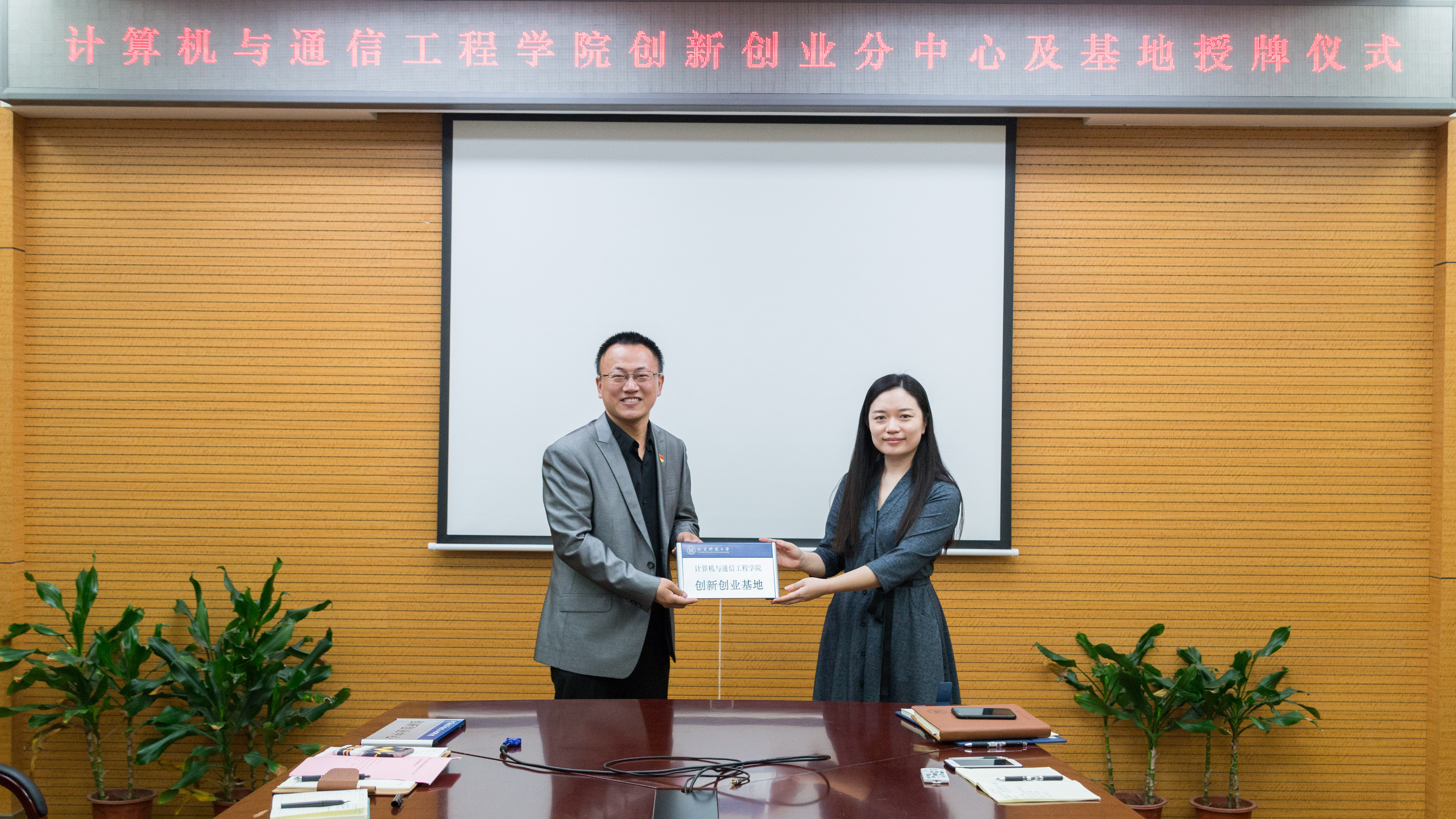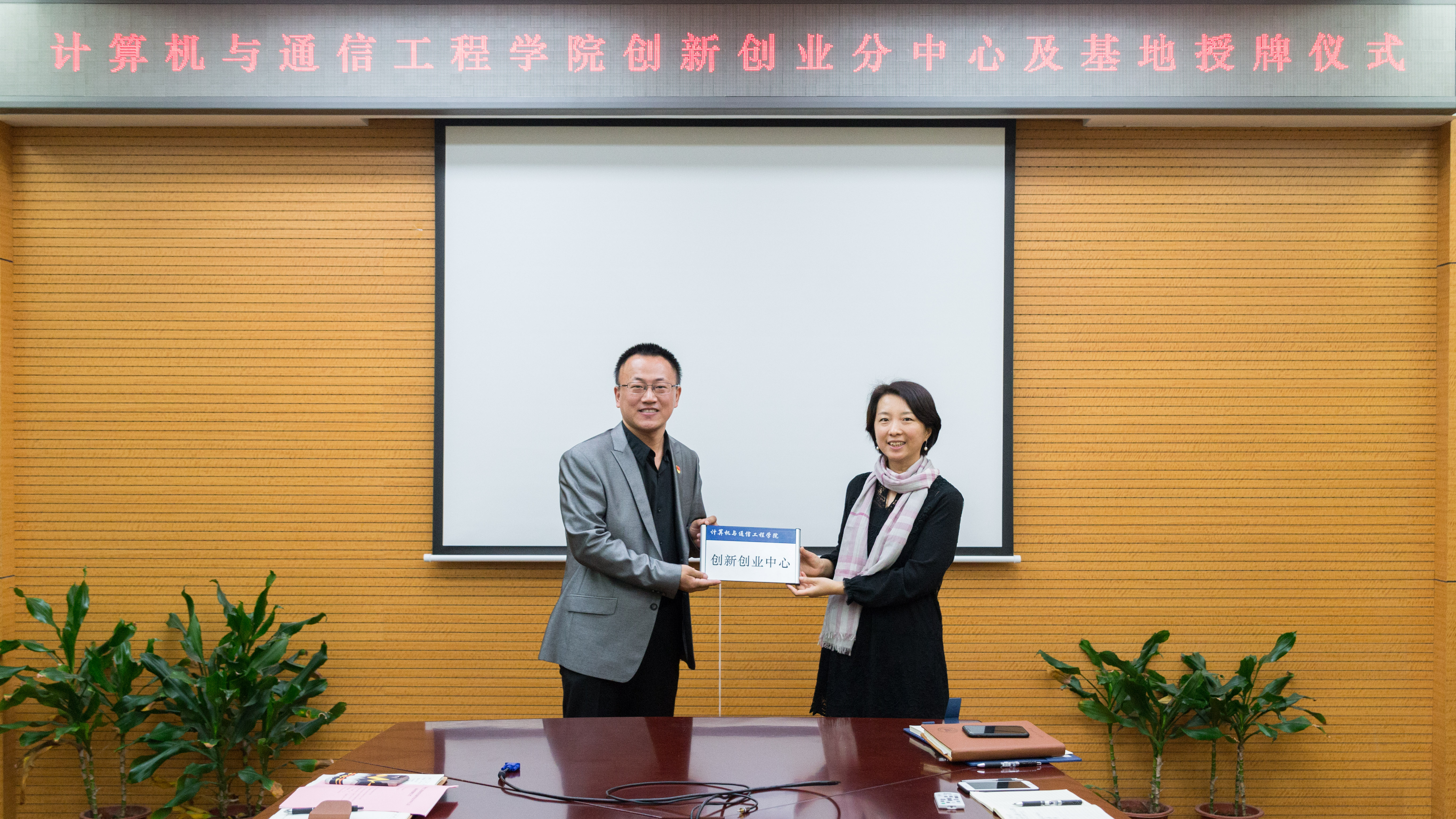 创新创业基地”两块牌匾授予学院。