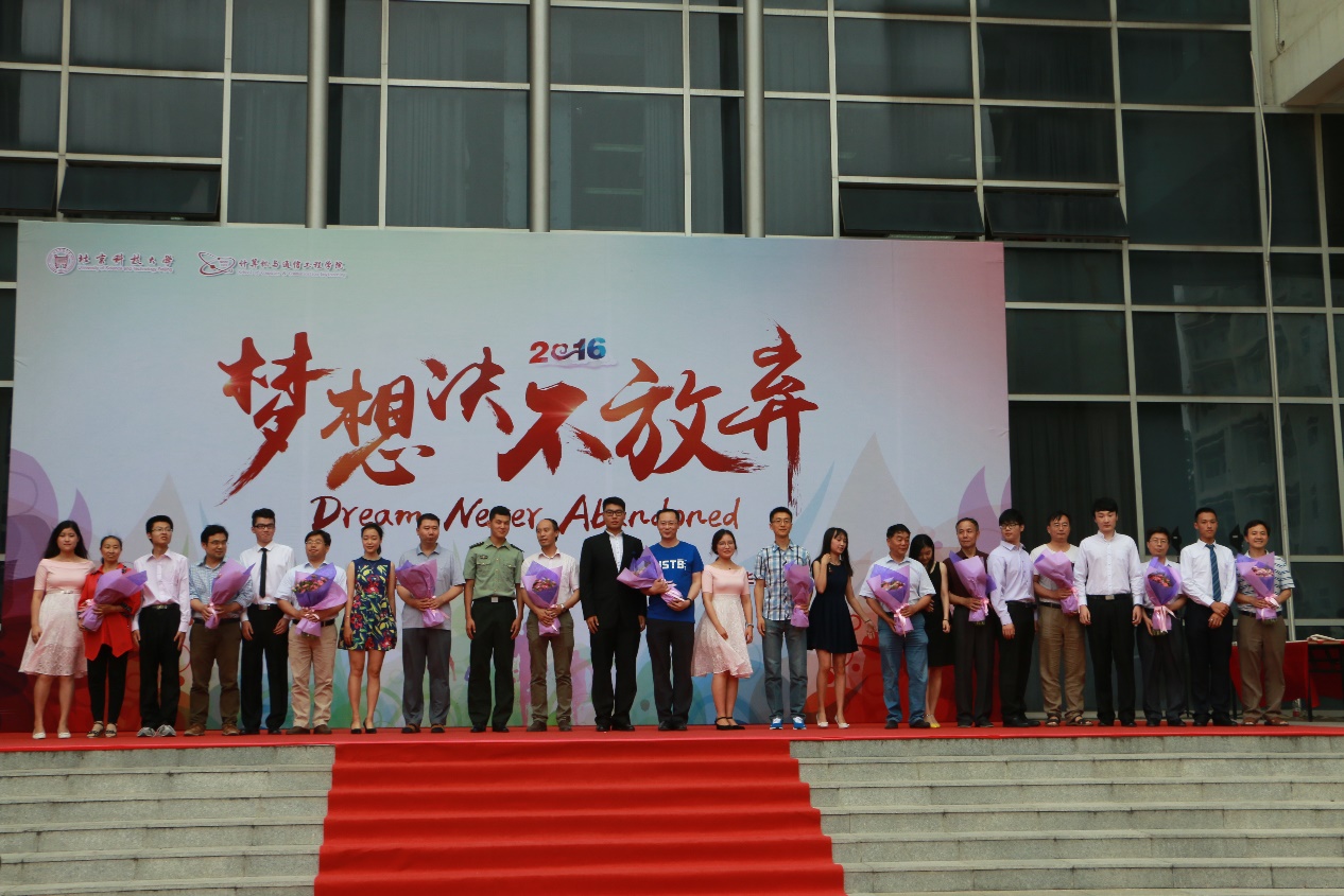 2016届本科生毕业典礼在机电信息楼南广场隆重举行。校学生工作部部长于成文、校招生就业处处长尹兆华、校团委书记李磊、校友会基金会办公室主任吕朝伟、nt动漫