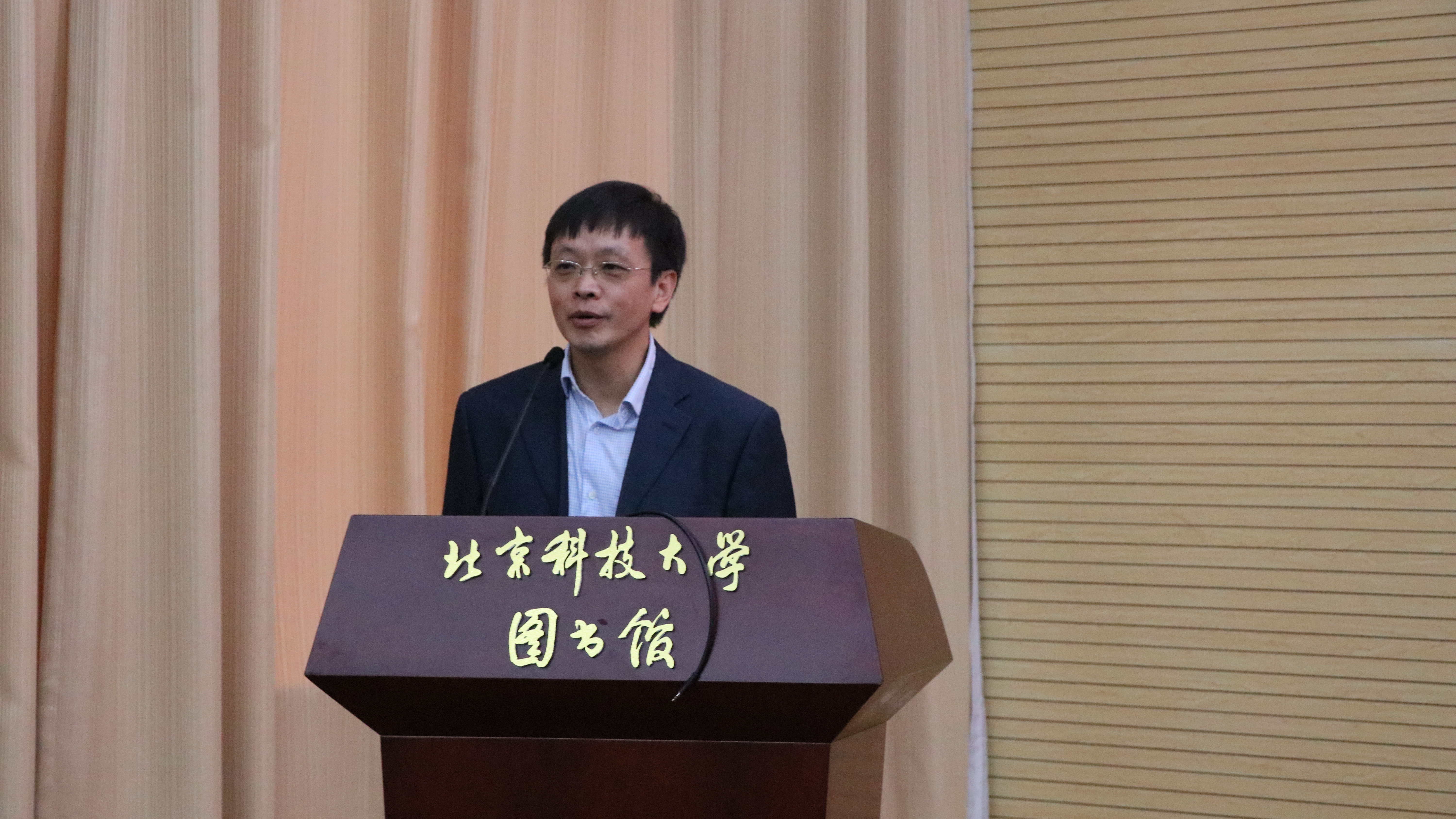 何民庆致开幕词。何民庆代表学校向各位嘉宾表示欢迎和感谢,回顾了我校与人工智能协会的渊源历史,预祝本次讲坛成功举办。