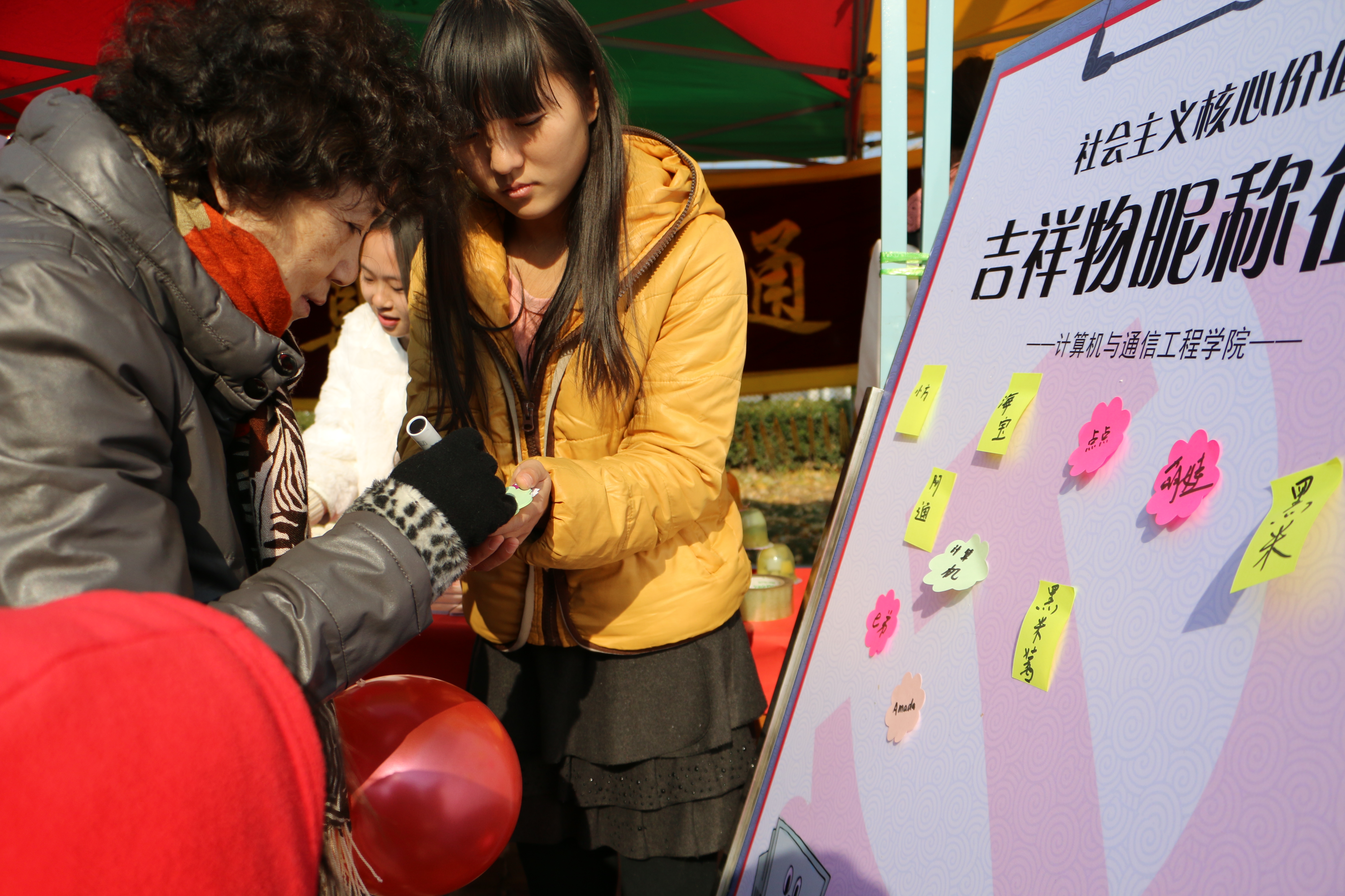 “核心价值观吉祥物”昵称征集活动也引起了许多同学的关注,活泼可爱的“电脑人”在同学们的共同思考下有了许多动听的昵称:“一点”、“e弟”、“阿通”、“小Q”“机宝”……各式各样的名字从不同的方面表现了吉祥物的特点,体现了学科特色,也体现出大学生们对社会主义核心价值观的关注和理解。本次主题宣传活动以丰富新颖的的形式向同学们介绍了社会主义核心价值观的具体内涵,旨在通过活泼、生动的形式培育大学生的社会主义核心价值观 :“从我做起,从点滴小事做起”。