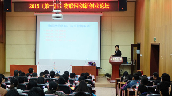 副院长张晓彤教授在致辞中谈到,物联网产业近年来成为我国五大新兴战略性产业之一,发展态势十分迅猛,对人们的日常生活产生了深远的影响。本届论坛响应国家“大众创业、万众创新”的号召,将从iCAN物联网大赛的角度解读国内最新产业政策,剖析物联网的现状和机遇,探讨未来发展趋势和创业机会。而我校有着“求实鼎新”的校训精神,长期以来都很重视大学生科技创新,学校创新创业氛围浓厚。作为全国首批开设物联网工程专业的高校,在探索物联网的发展的同时取得了一定的成果,也非常欢迎优秀的年轻学子参与到物联网的探索和研究中来。