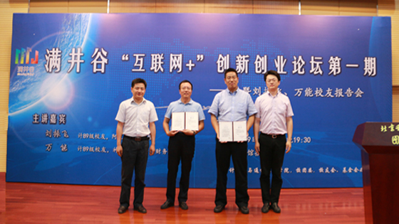图书馆报告厅精彩上演。计算机专业89级校友、阿里巴巴合伙人、副总裁刘振飞,计算机专业89级校友、神州泰岳董事、财务总监万能受邀回母校参加满井谷“互联网+”创新创业平台的成立仪式,受聘担任学生创新创业企业导师,并为首批进入“满井谷”的学生创新创业团队颁发入谷邀请函。报告会前,副校长王维才、何民庆与刘振飞、万能校友进行了交流。满井谷发起单位nt动漫