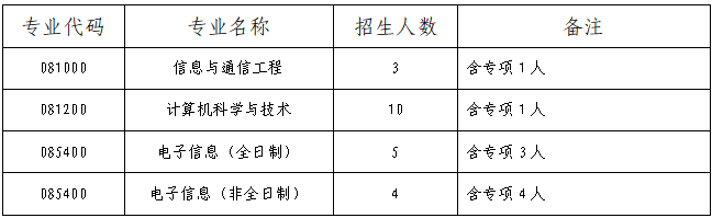 本批次招收博士研究生22人,其中计算机科学与技术专业10人(含专项计划1人),信息与通信工程专业3人(含专项计划1人),电子信息专业9人(含专项计划7人)。