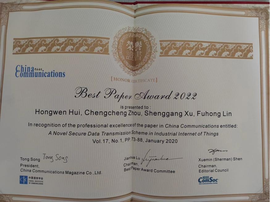 喜报!祝贺nt动漫 林福宏教授团队论文获2022年《中国通信》最佳论文奖!